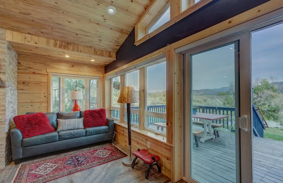 La villa River Place Retreat Unit 3, A Cozy Studio Condo Featuring Stunning River Views Howard, situada a 10 km del Union Church, cuenta con un patio con vistas a las montañas.
